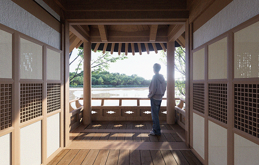 The calligraphy studio employs hanok spatial division and expansion techniques, allowing flexible separation or connection of spaces to accommodate different class sizes. When the doors of the daecheongmaru (main hall) and numaru (raised platform) are fully opened, the space becomes a single semi-indoor/semi-outdoor area that connects to both the courtyard and the adjacent reservoir.