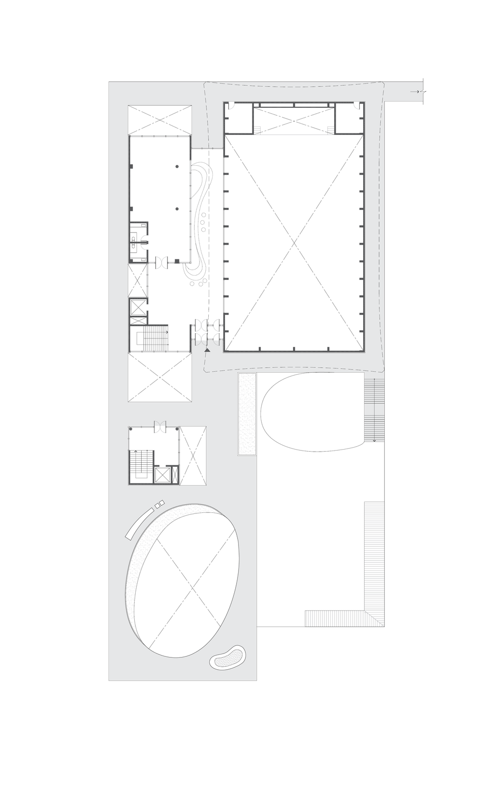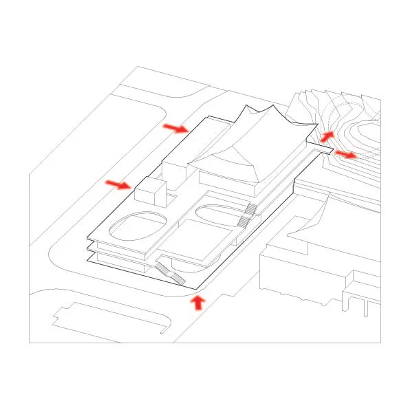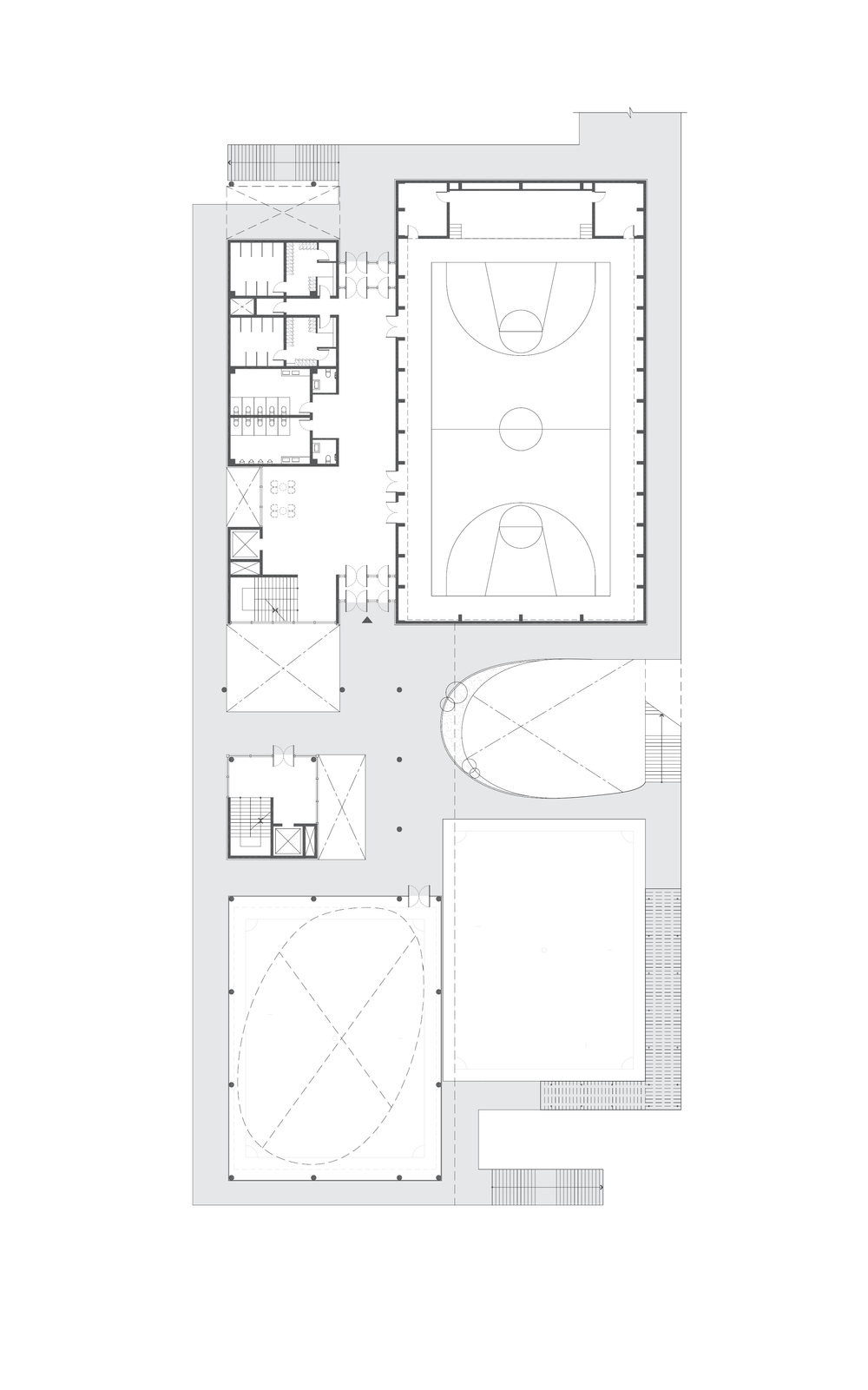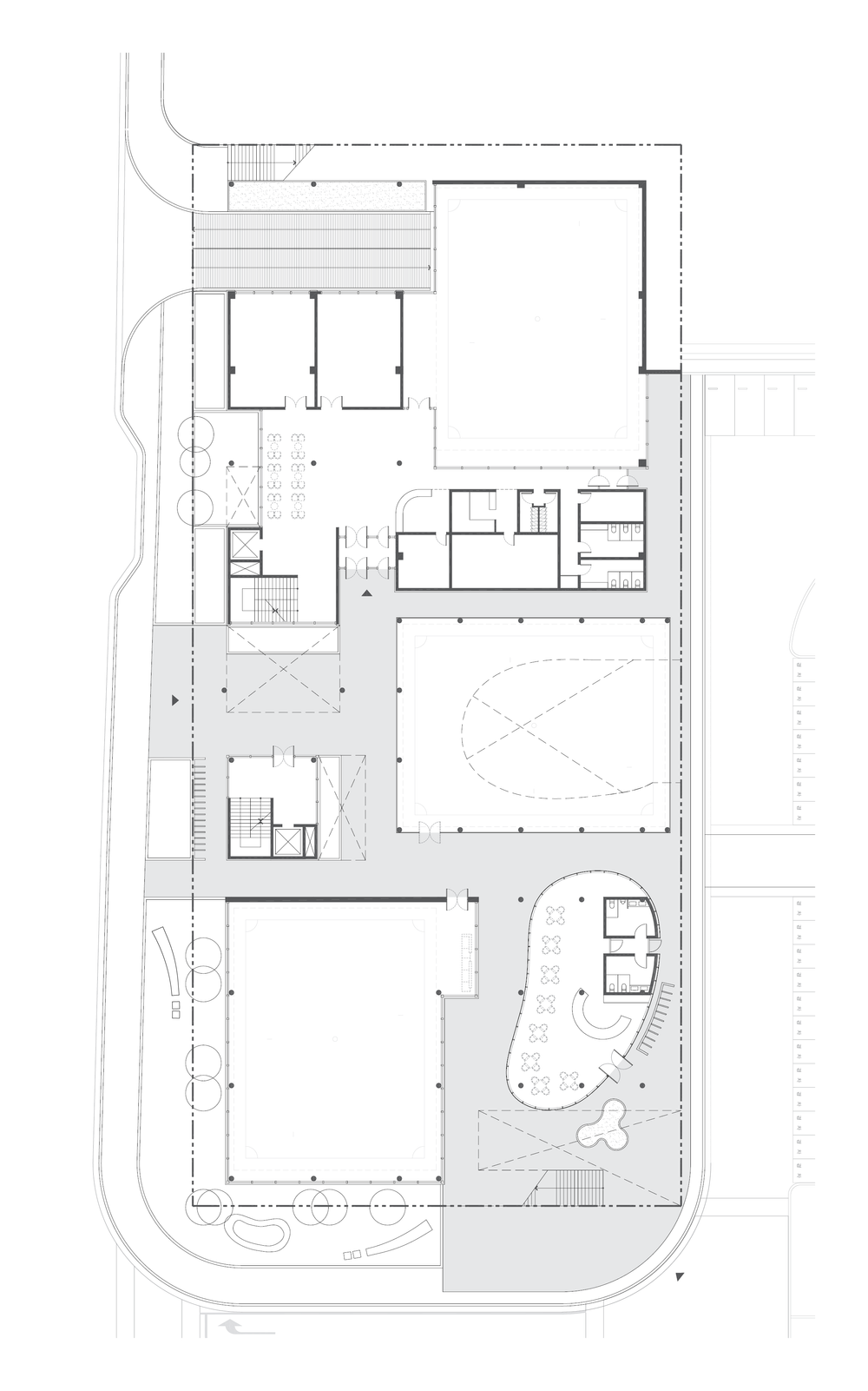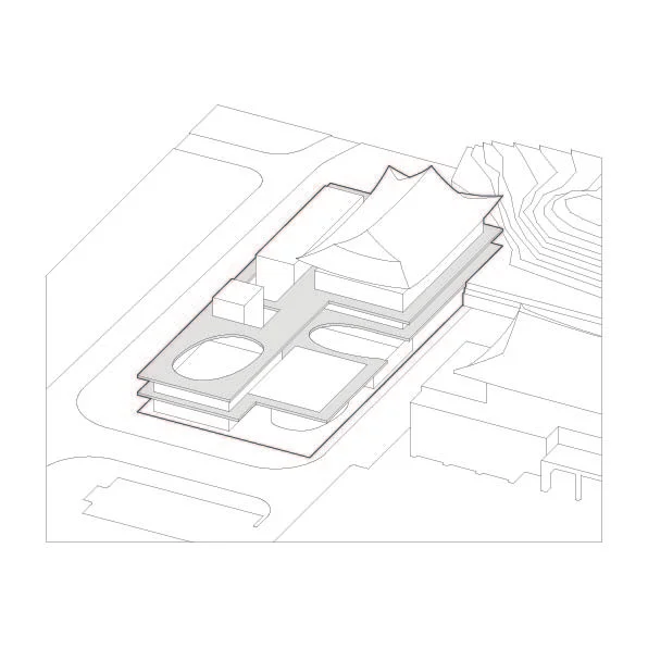 Multi-layered plates are overlapped on the site, designed to accommodate various programs within the courtyards. The plates, lifted above the ground, function as platforms that connect space to space and people to people. The expanded width and depth of the courtyards create places that embrace diverse ways of life.