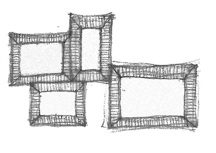 대지위 세 개의 판은 닫혀있는 목적공간이 아니며 모두를 위해 열려있는 외부 공간을 형성함